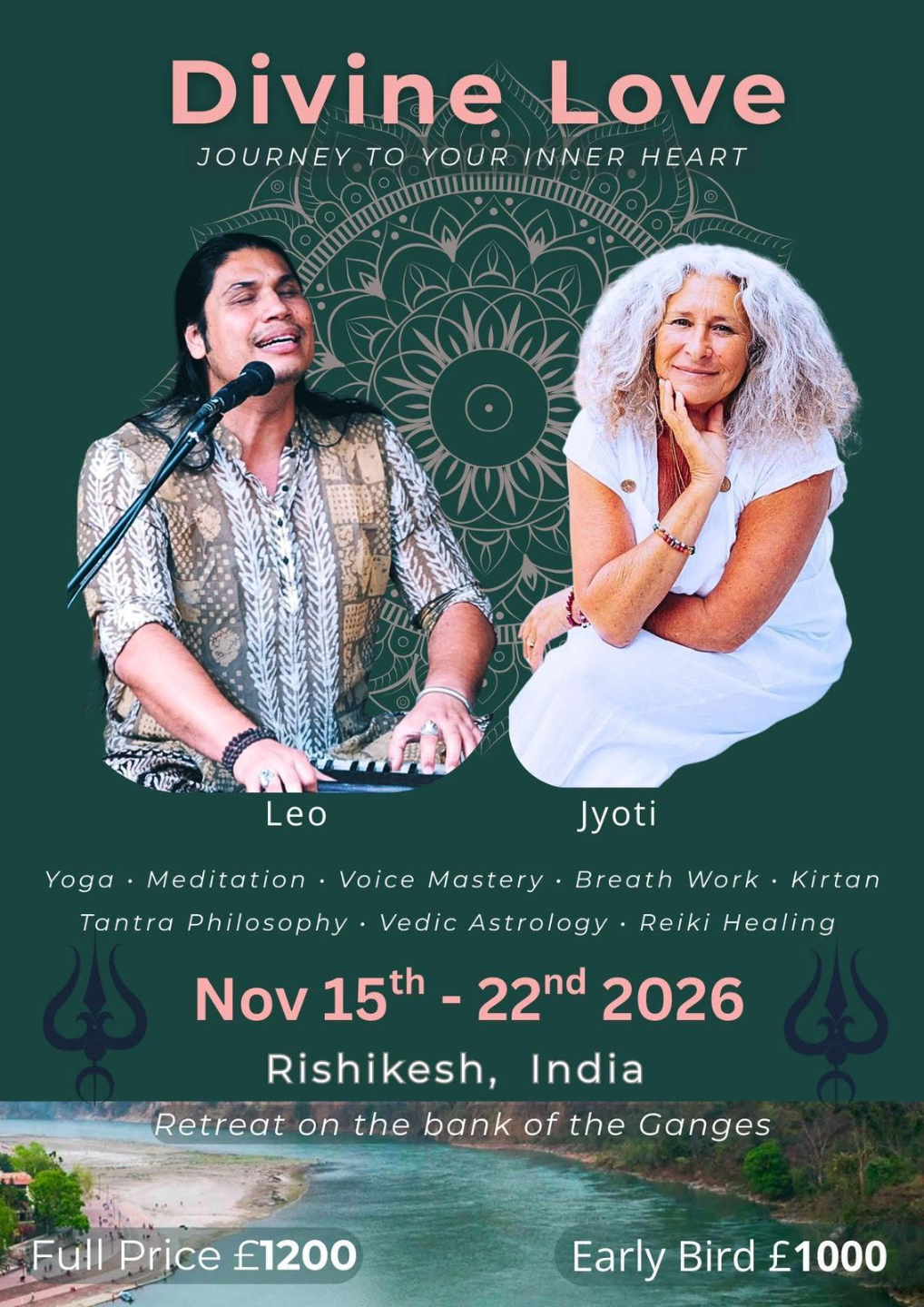 Through the unique and complementary teachings of Leo and Jyoti, you will be gently guided into greater openness, connection, and remembrance. Their shared presence weaves together devotion and embodiment, Shiva and Shakti, grounding and expansion, creating a space that is uplifting, nourishing, and profoundly transformative.